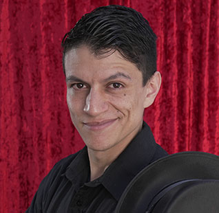 Egresado con honores de la Escuela Nacional de Arte Teatral en el año 2018. Es mago desde hace 22 años. Ganador del primer lugar en el Desafío de magos en 2010. Participó en 2014 en el Congreso internacional de magos de la International Brotherhood of Magicians en Jacksonville, Florida. Ha impartido clases y conferencias sobre teoría e historia de la magia, en Ciudad de México, Oaxaca, Los Ángeles, Nueva York y Las Vegas. En 2018 fue beneficiario del Fonca en la categoría actrices y actores de cabaret por su unipersonal: La desilusión de la ilusión